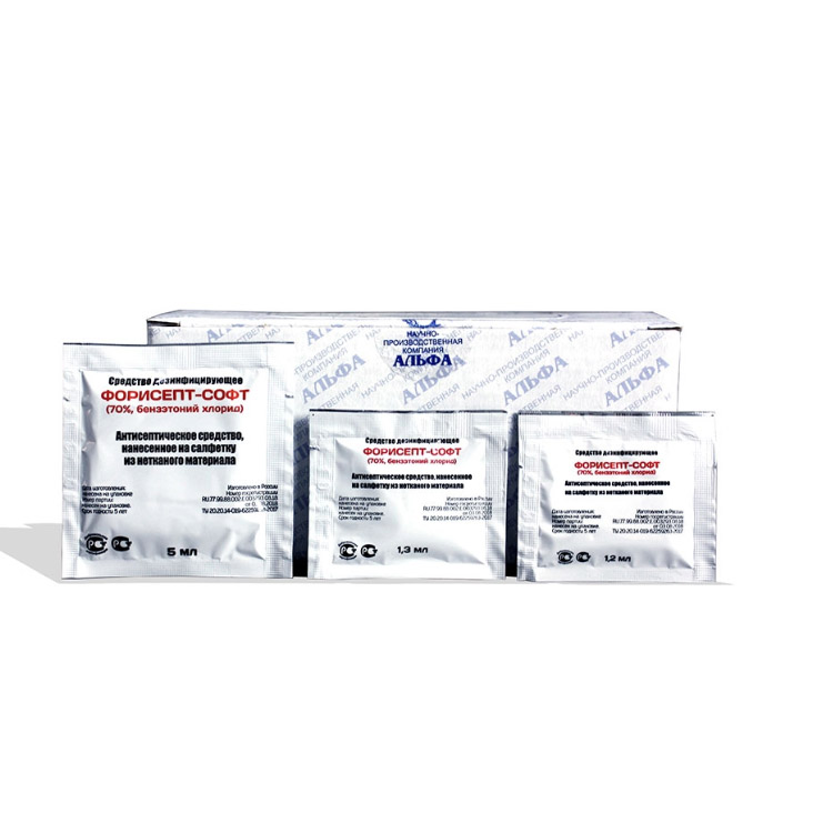 ФОРИСЕПТ-СОФТ (70%, бензэтоний хлорид) салфетка в индивидуальной упаковке
